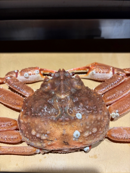 本日は良い魚が揃いました。脂の乗った鯵しっかりとした身質のイサギそして立派なカニ。仕入れによって...